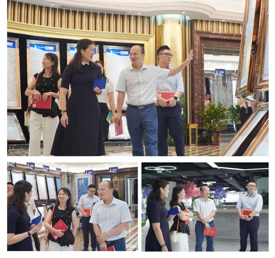 隨后,碧桂園團(tuán)隊(duì)在方向企業(yè)董事總經(jīng)理劉麗燕的帶領(lǐng)下參觀了展廳,實(shí)地觀摩方向企業(yè)各類(lèi)產(chǎn)品,從石代臻品、可麗雅I PLUS大板、可麗雅二代13.5mm、CLEAIR+可麗雅空氣凈化磚、至尊白系列、云瓷片系列、通體大理石等系列產(chǎn)品,碧桂園團(tuán)隊(duì)對(duì)產(chǎn)品贊口不絕,不時(shí)詳細(xì)詢(xún)問(wèn),并拍照留影。