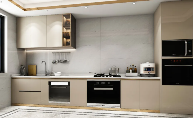 純凈柔和的空間氣度,采用馬特拉通體瓷拋石中板進(jìn)行鋪貼的廚房,既有優(yōu)雅的格調(diào),又有時(shí)尚摩登的態(tài)度。