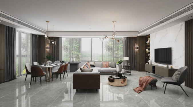 與其他顏色相比,窗前莫蘭迪色系椅子可以說是點睛之筆,配上800x800mm科隆奧尼灰,無論是公共空間、還是客廳、餐廳、廚房都能應付自如,灰調色澤凸顯細膩質感,給人一種直抵人心的靜謐和優雅。