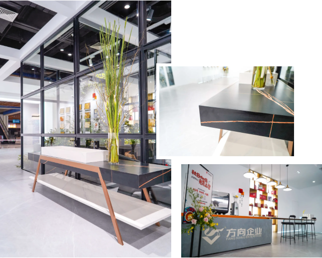 巖板定制也是方向企業(yè)幸福家居生活館中的一大亮點(diǎn),打破家居場(chǎng)景的邊界,多角度演繹產(chǎn)品的藝術(shù)美學(xué)和無(wú)限創(chuàng)意,這不僅體現(xiàn)了公司在巖板領(lǐng)域的創(chuàng)新設(shè)計(jì)能力,也反映了公司在巖板應(yīng)用加工領(lǐng)域的探索和研究。