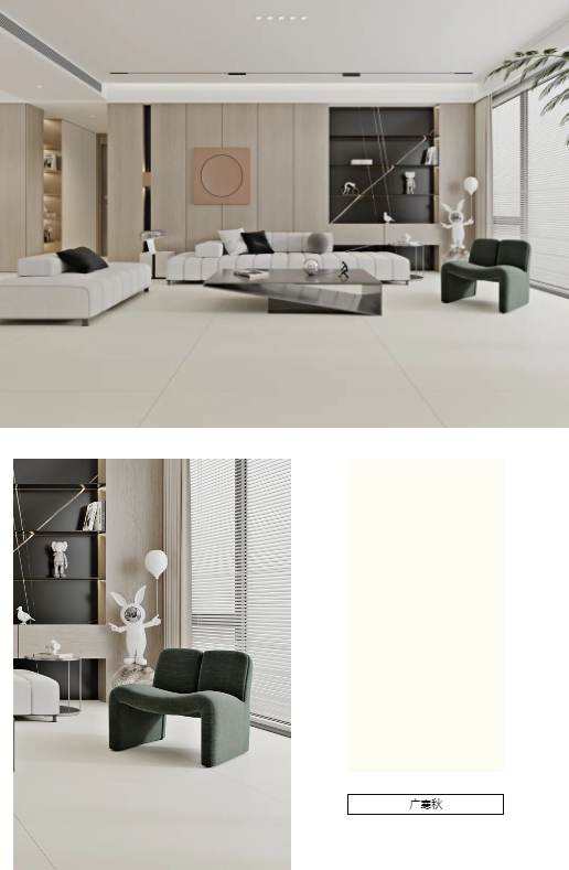 遵循“少即是多”的理念,宋素|凡古磚-東風寒擺脫了大開大合的紋理,簡約的色系,結合窗外柔和陽光,映照屋內療愈錯落的輪廓,仿佛在訴說著家的幸福味道。