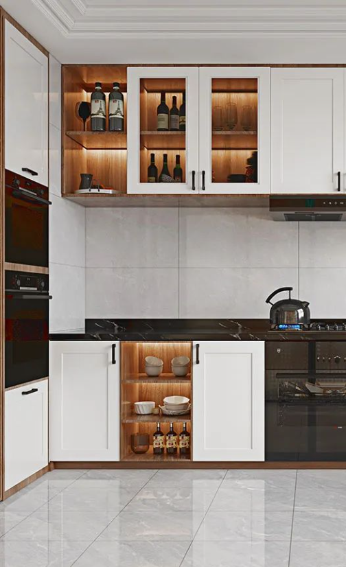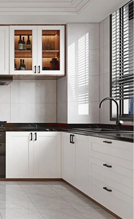 不妨打開窗戶,引進戶外新鮮空氣,抵消廚房撲面而來的那種悶熱感,同時墻面選用通體瓷拋石中板洛倫灰,既能提亮空間,又有助于減少種種污跡帶來的煩惱,防油防污,易于擦洗。