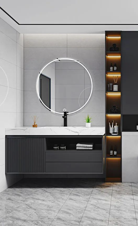 收納柜與墻地面采用經典的黑白灰對比設計,明媚的自然光線灑落于清淺的泊桑灰色調上,純凈簡約的空間,仿佛把炎熱的煩躁一掃而空,撲面而來的清涼氣息, 每一刻都是美妙生活。