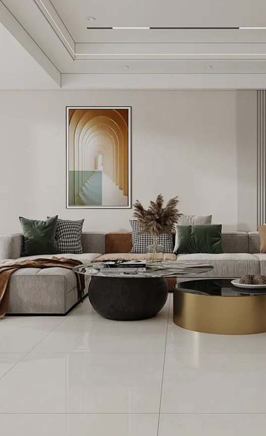 暖色系的帕爾馬,若隱若現(xiàn)的紋理像是在低聲述說著大地?zé)o限的熱情與豪邁,結(jié)合金屬色的茶幾與藝術(shù)掛畫,將和諧靜謐灌注于居者的視覺之中,讓色調(diào)顯得溫柔、恬適。