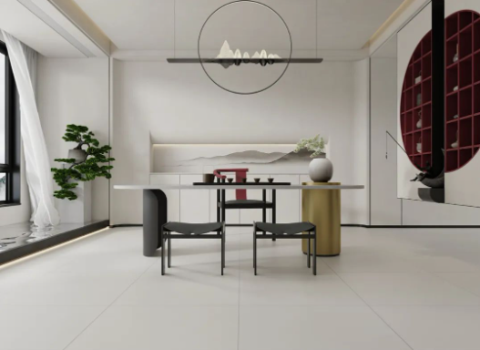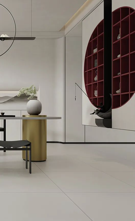 門外是山河遠闊,門內是閑茶禪致。返璞歸真的材質運用配合著彩云歸干凈利落的沉穩灰調,將東方韻味的優雅姿態完美呈現。