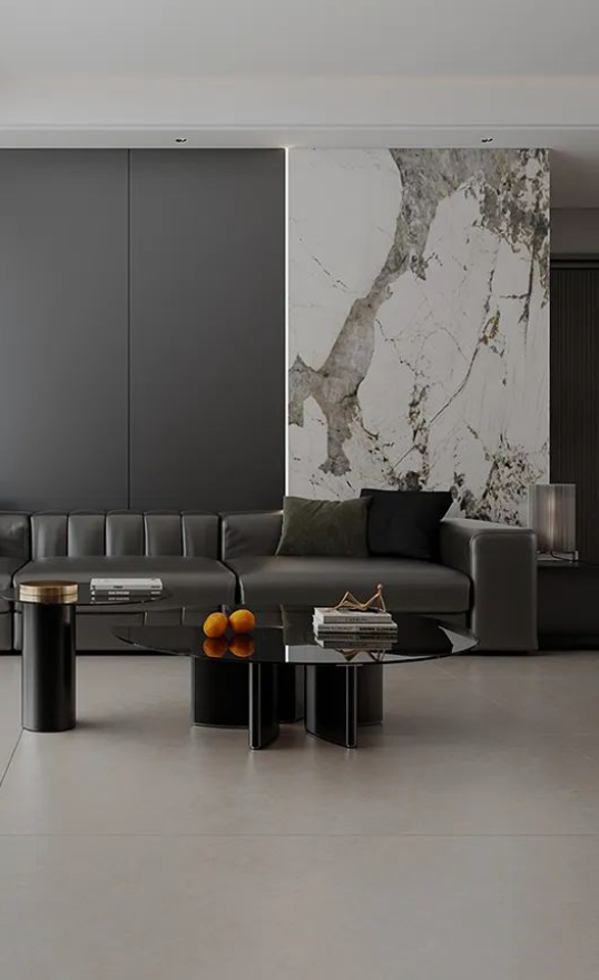 750X1500mm黃金規(guī)格,結合柔和暖灰延伸空間的視覺感同時,將客廳設計與美好自然組合,復刻原石經(jīng)歷歲月后的真實肌理,為空間營造輕松治愈的舒適氛圍。